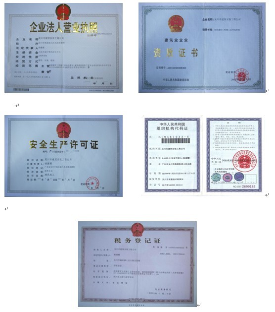 企業法人營業執照;資質證書;安全生產許可證;組織機構代碼證;稅務登記證: