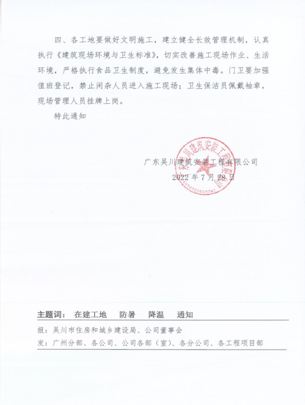 關于切實做好在建工地防暑降溫工作的通知