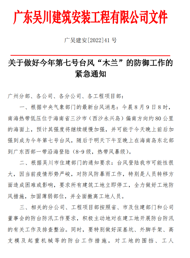 關(guān)于做好今年第七號(hào)臺(tái)風(fēng)“木蘭”的防御工作的緊急通知