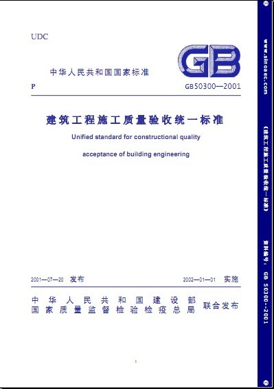 建標[2001]157 號 《 國務院各有關部門,各省、自治區(qū)建設廳,直轄市建發(fā),計劃單位列市建委, 新疆生產(chǎn)建設兵團,各有關協(xié)會: 根據(jù)我部《關于印發(fā)一九九八年工程建筑國家標準制訂、修訂計劃(第二批) 的通知》(建標[1998]244 號)的要求,由建設部會同有關門部門共同修訂的《建筑工 程施工質(zhì)量驗收統(tǒng)一標準》,經(jīng)有關部門會審,批準為國家標準,編號為 GB50300-2001,自2002 年 1 月 1 日起施行,其中,3.0.3、5.0.4、5.0.7、6.0.3、6.0.4、 6.0.7 為強制性條文,必須嚴格執(zhí)行。原《建筑安裝工程質(zhì)量檢驗評定統(tǒng)一標準》 GBJ300-88 同時廢止。 本標準由建設部負責管理,中國建筑科學研究院負責具體解釋工作,建設 定額研究所組織中國建筑工業(yè)出版社出版發(fā)行。 中華人民共和國建設部 2001 年 7 月 20 日