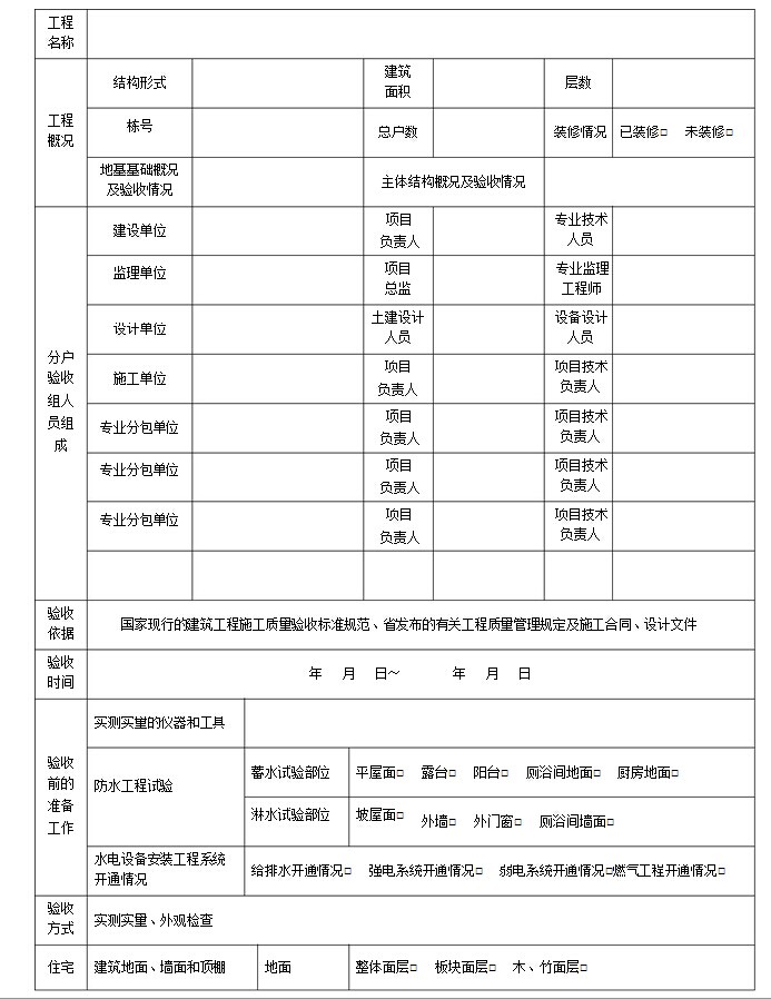 住宅工程質量分戶驗收方案的填寫說明